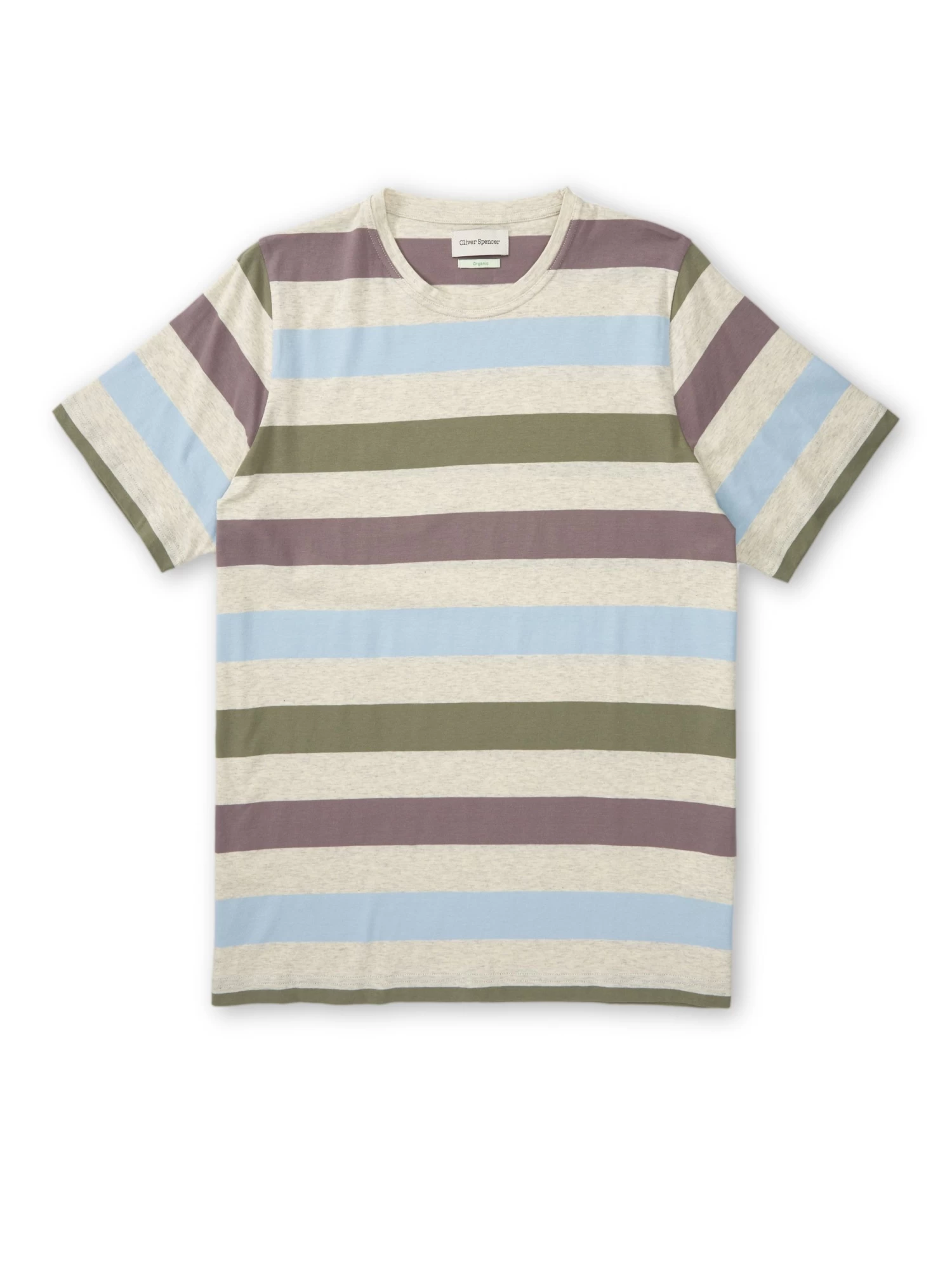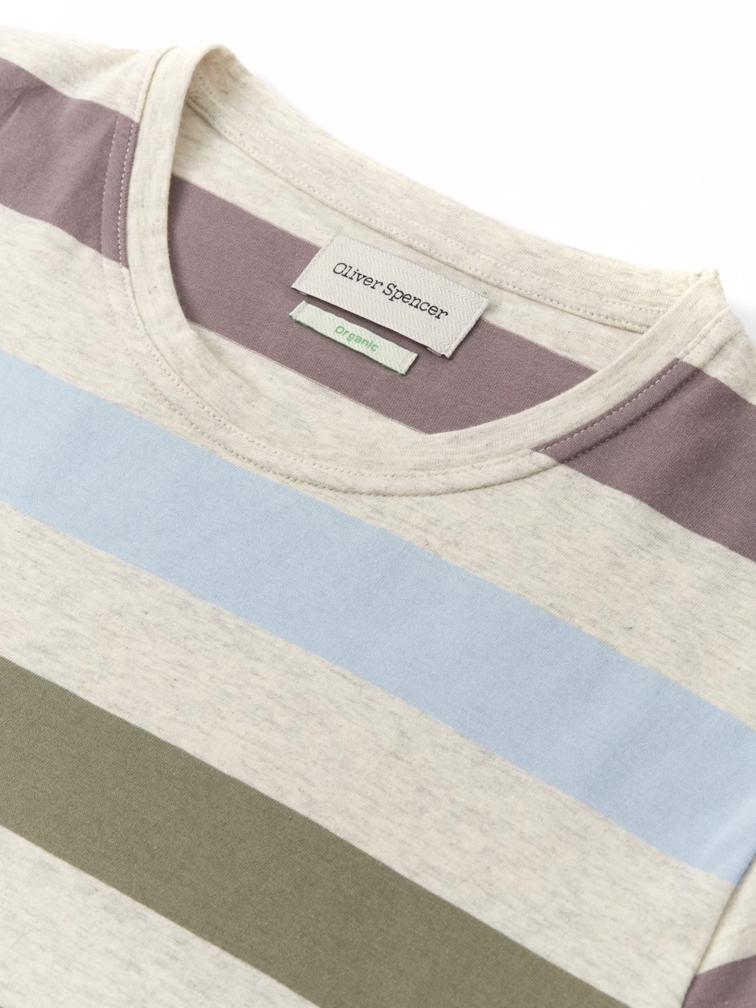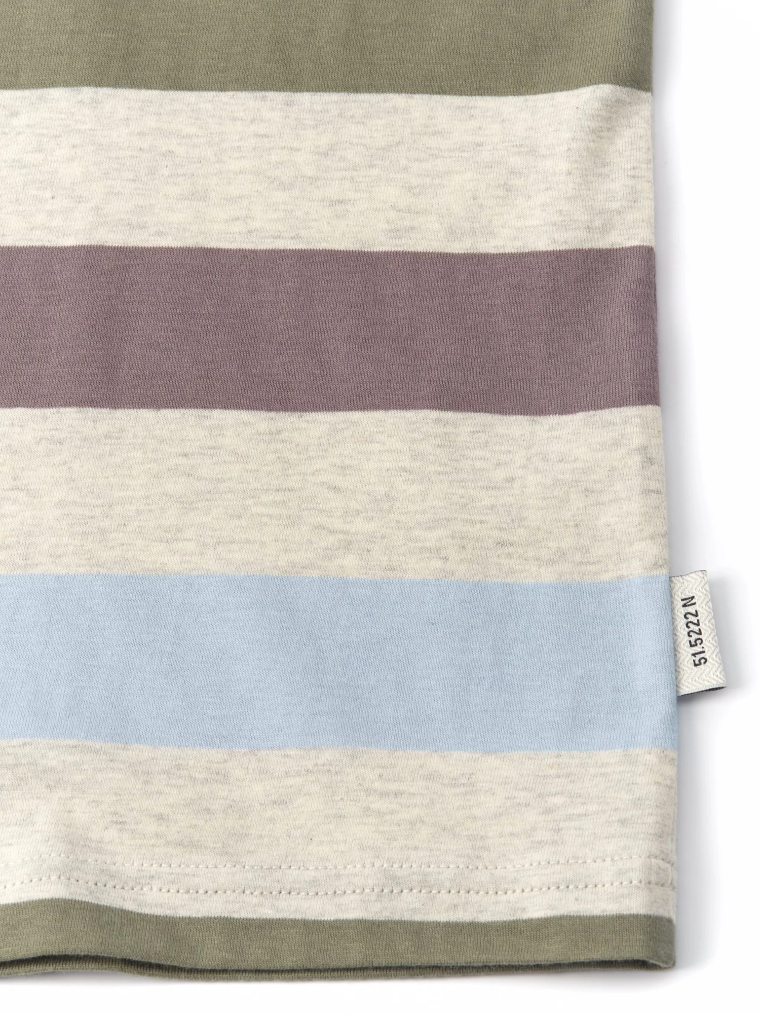 This lightweight 100% slub cotton jersey t-shirt featuring a multi-stripe pattern is a beautiful addition to your casual spring and summer wardrobe, and great for your casual off-duty fits.