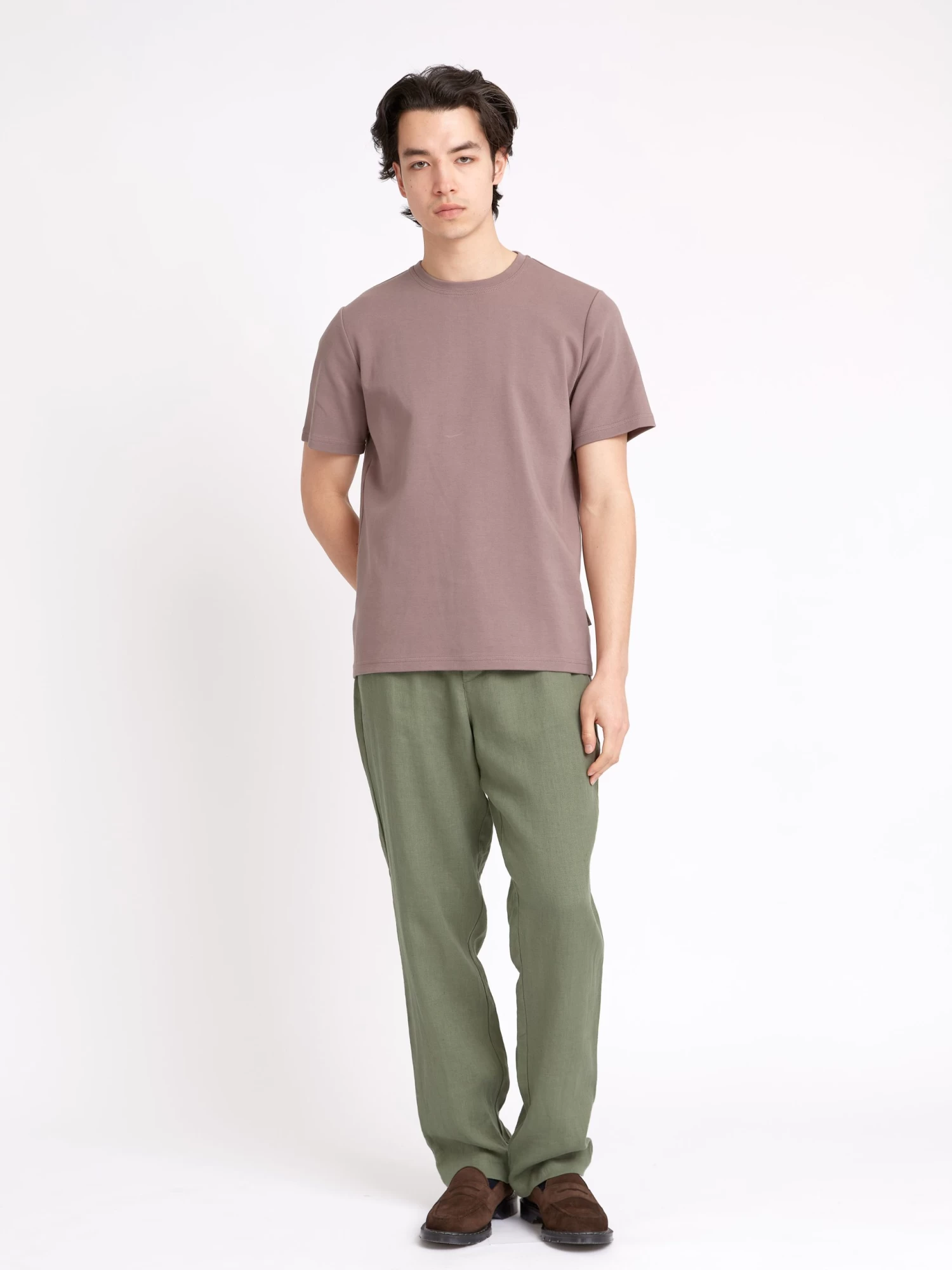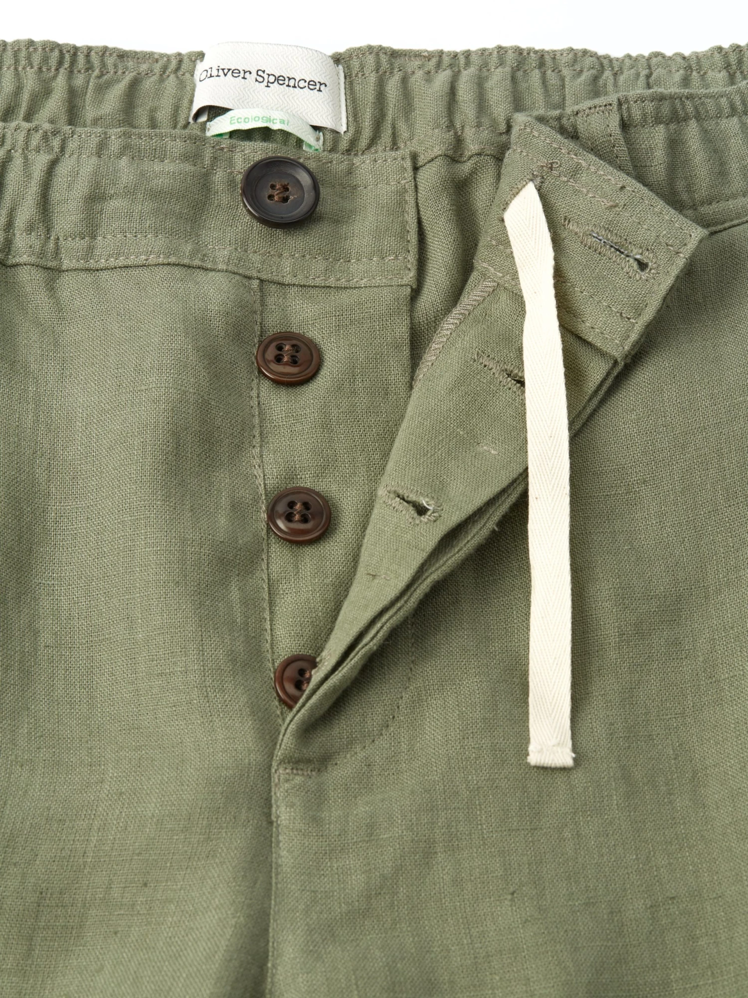 An Oliver Spencer classic, the drawstring trouser is a relaxed style cut straight through the leg with two back pockets, a cotton drawstring through the waistband and a button fly. This olive green style is perfect for smart-casual and off-duty summer fits, pairing well with blue tones and neutrals such as cream.