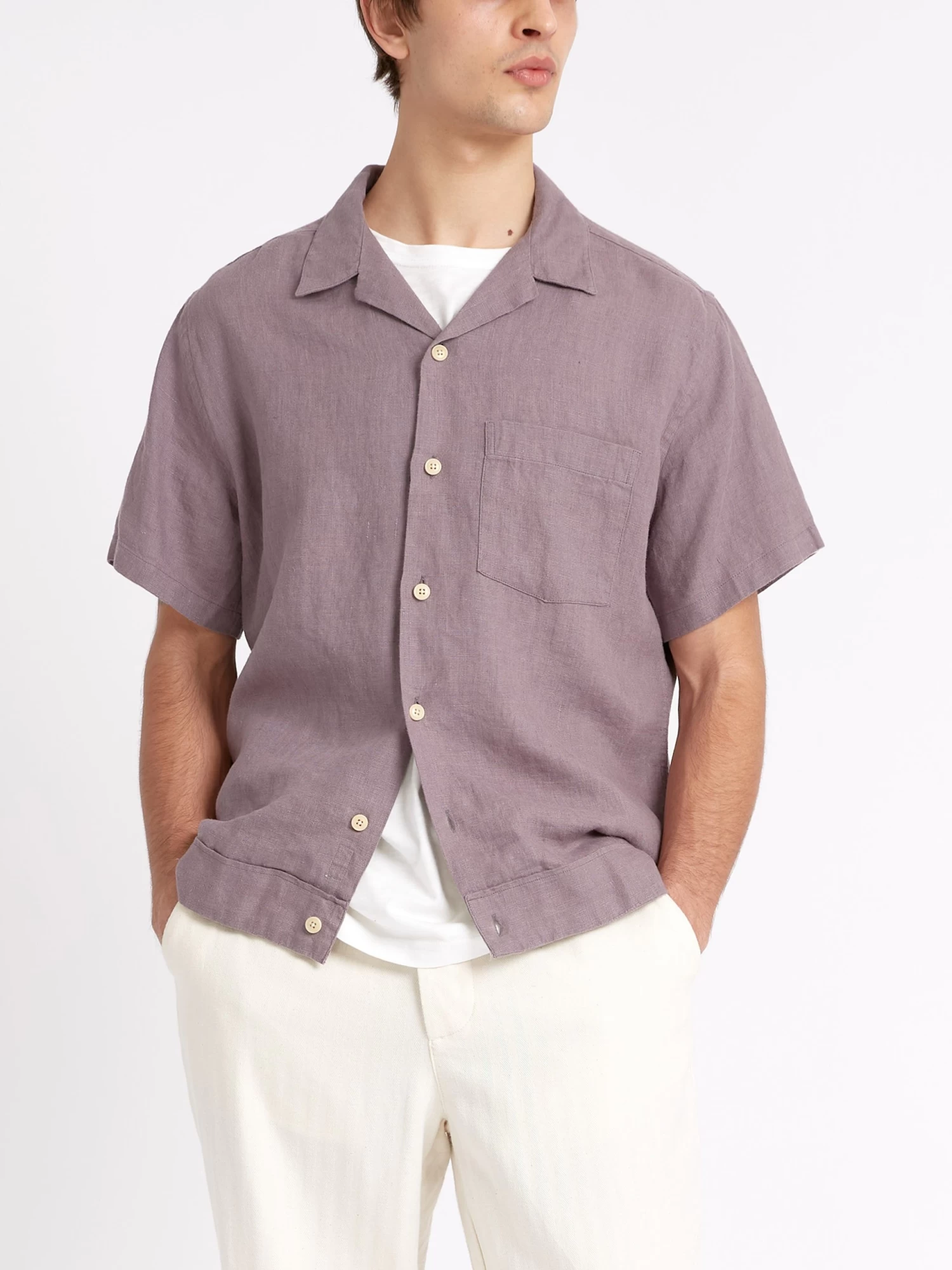 Inspired by the classic Cuban camp collar shirt, the Havana short-sleeve shirt is a relaxed tropical style that is perfect for all of your spring and summer fits. This super soft and lightweight version in mauve has been constructed from 100% linen for an elegant summery finish.