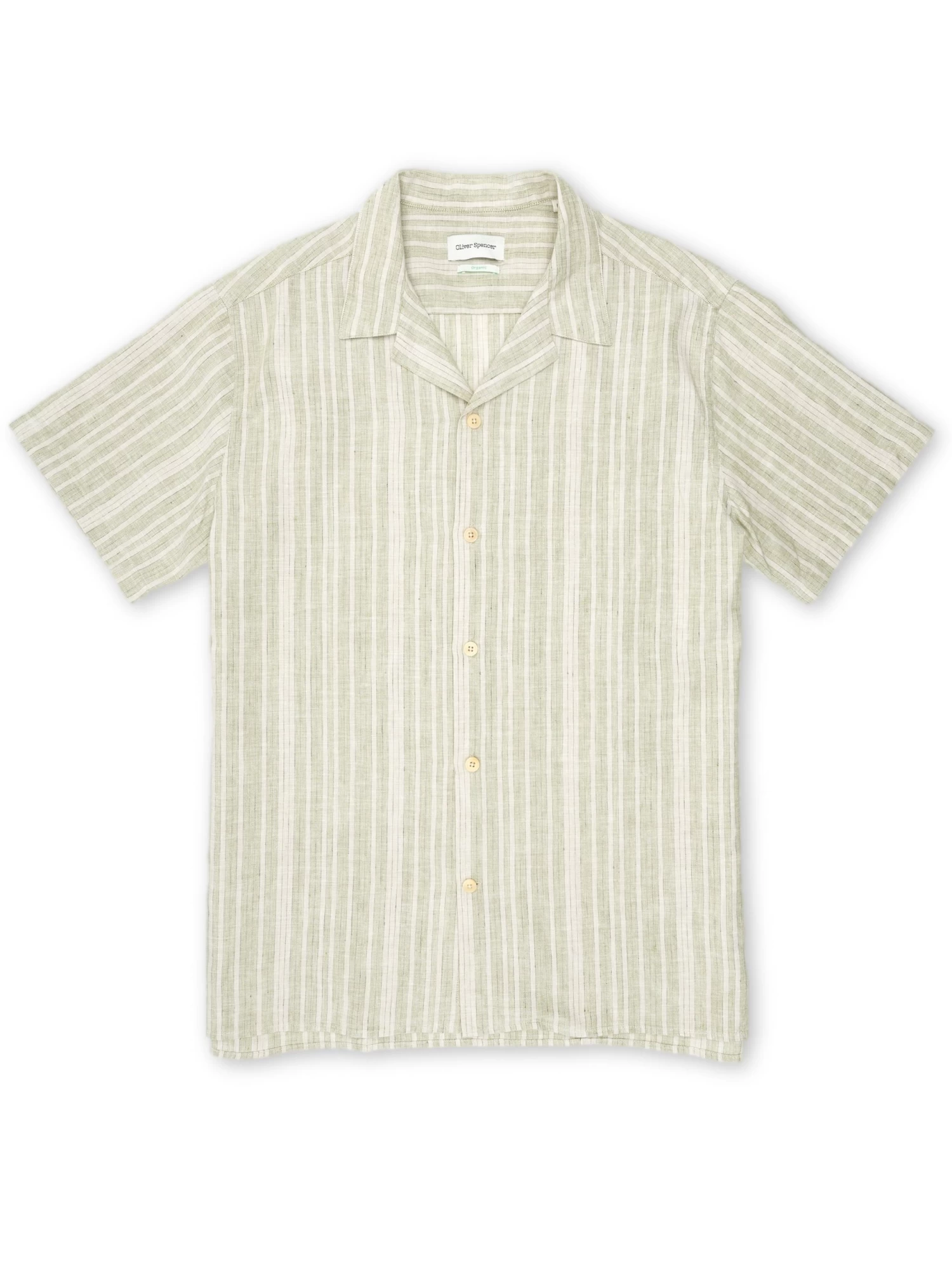 Inspired by the classic Cuban camp collar shirt, the Havana short-sleeve shirt is a relaxed tropical style that is perfect for all of your spring and summer fits. Constructed from a soft and lightweight organic cotton and linen blend, this green style will pair with all manner of neutral tone trousers and shorts this season.