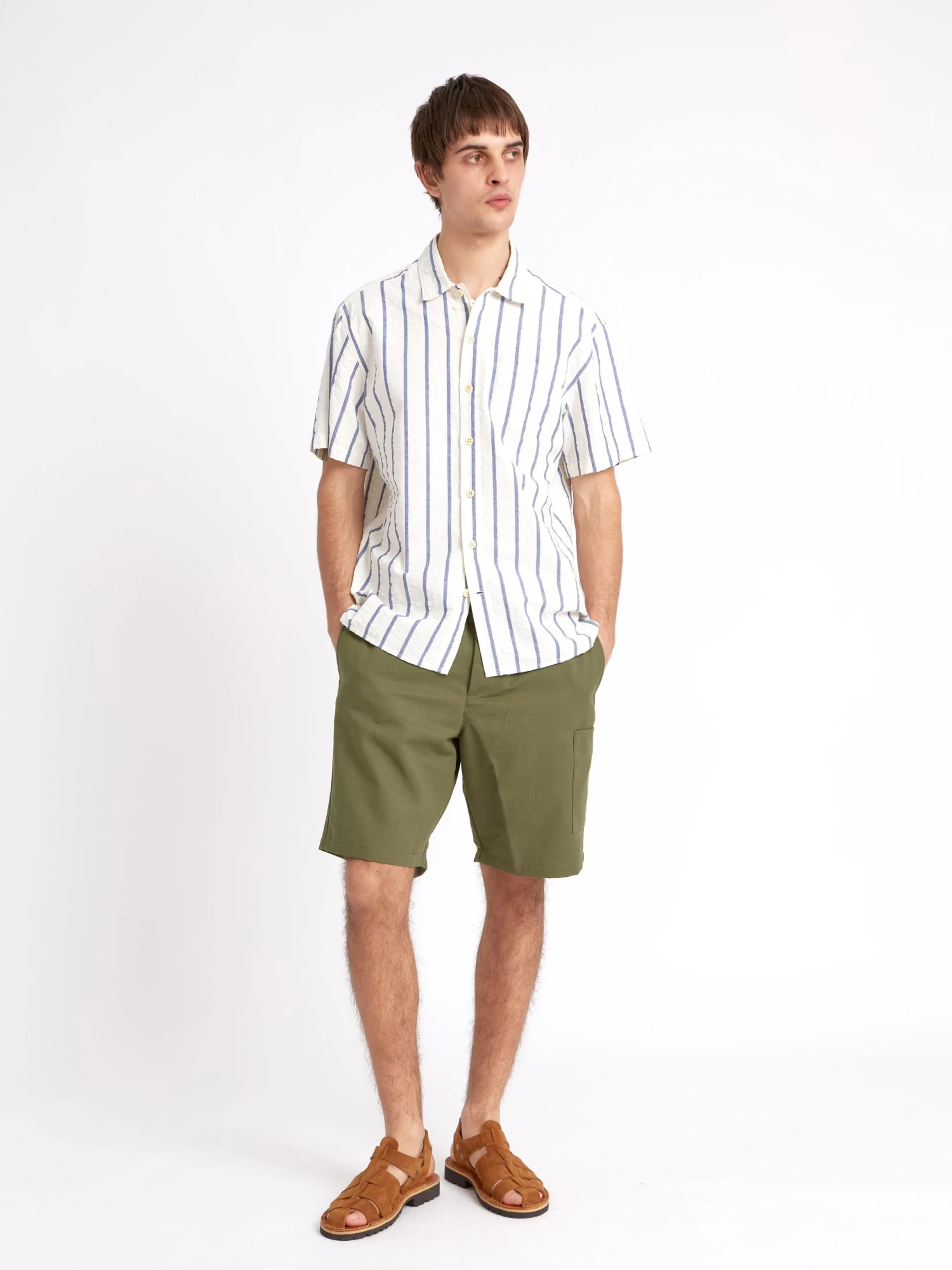 The Judo Short comes in a relaxed fit and carries a side pocket in the fashion of a cargo short. Constructed in our Ellbridge fabric, a midweight organic cotton. Perfect paired with a casual shirt throughout the summer.