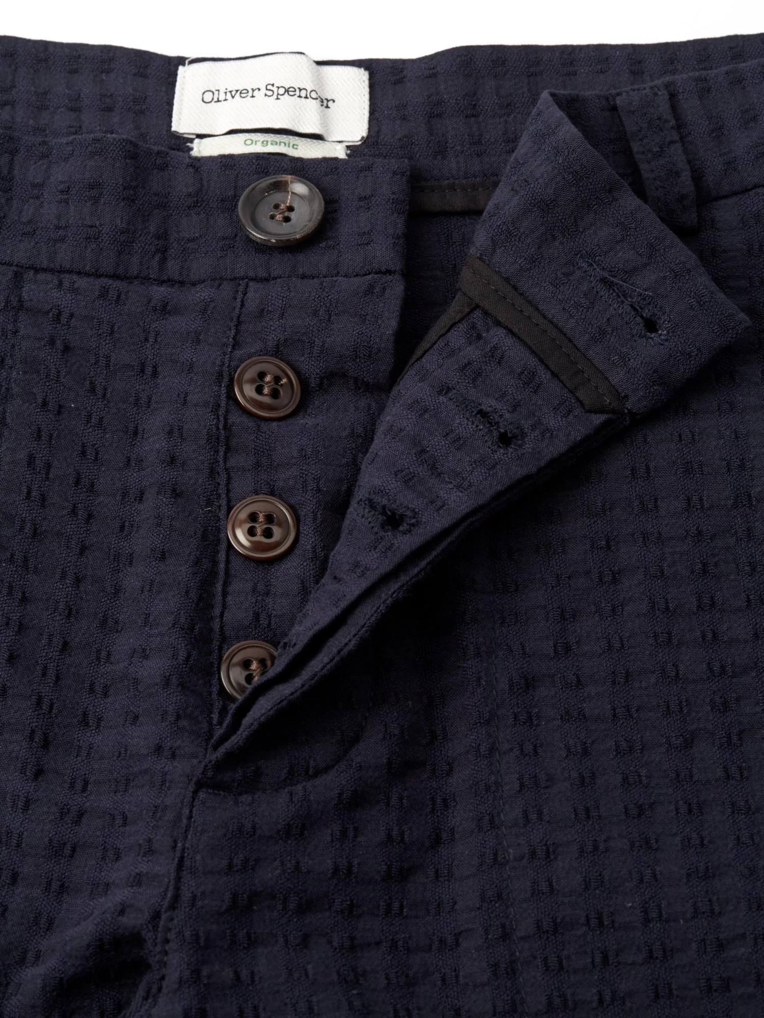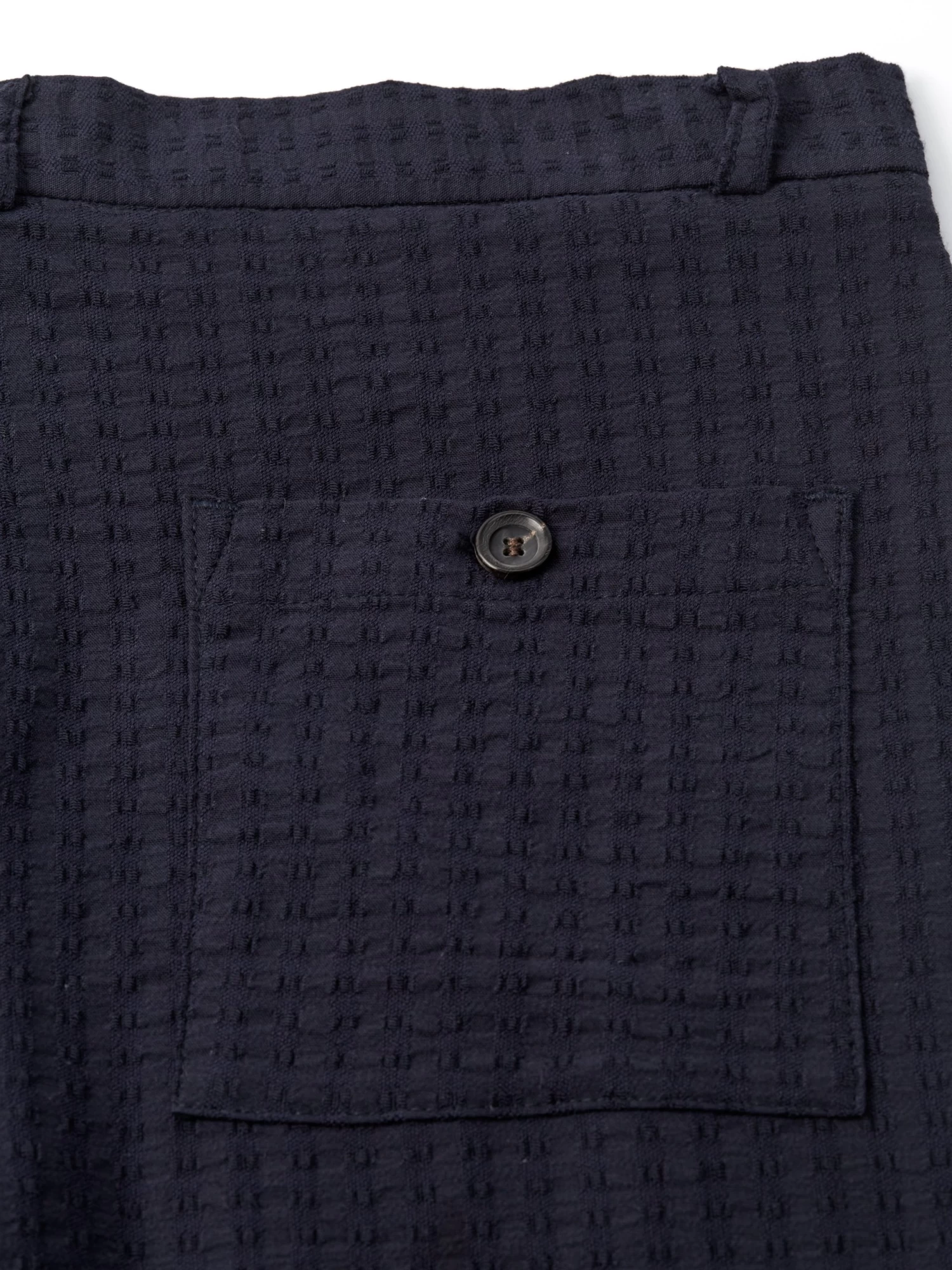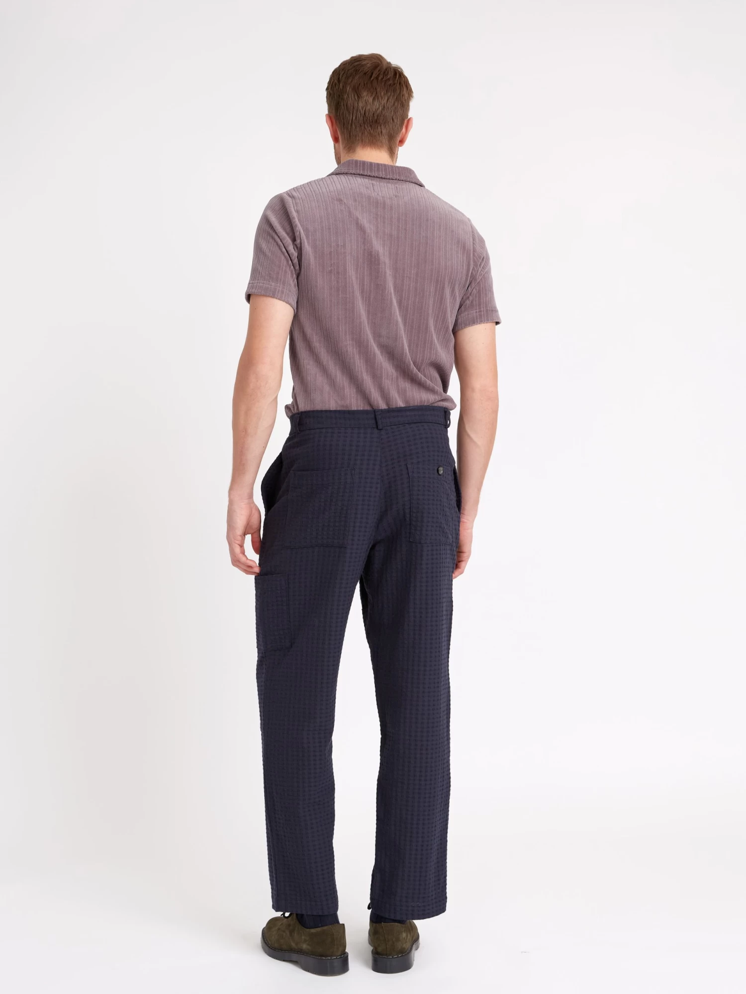 Judo trousers provide a contemporary alternative to a traditional men’s trouser. With a relaxed fit and a cropped finish, the Judo sits slightly higher on the waist with a gradual taper towards the hem. This organic cotton version is subtly textural thanks to a delicate stitch detail, and perfectly lightweight for a relaxed spring/summer wardrobe.