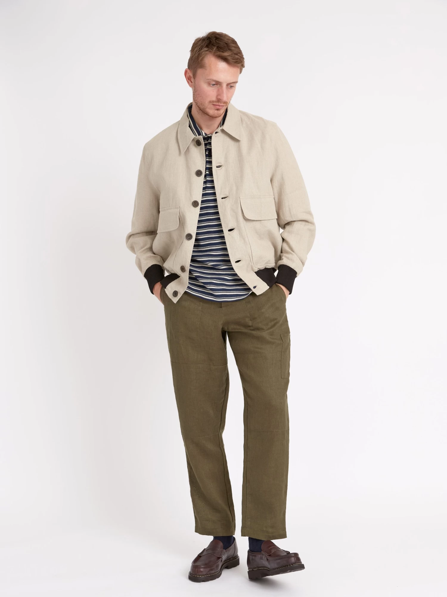 The Linfield jacket straddles that fine line between smart and casual spring outerwear. Smarter than a bomber but more versatile than the family of mid-length coats, it’s an ideal choice for spring looks. We’ve cut this style in a beautiful 100% linen fabric for a slightly textural finish and a really natural drape.