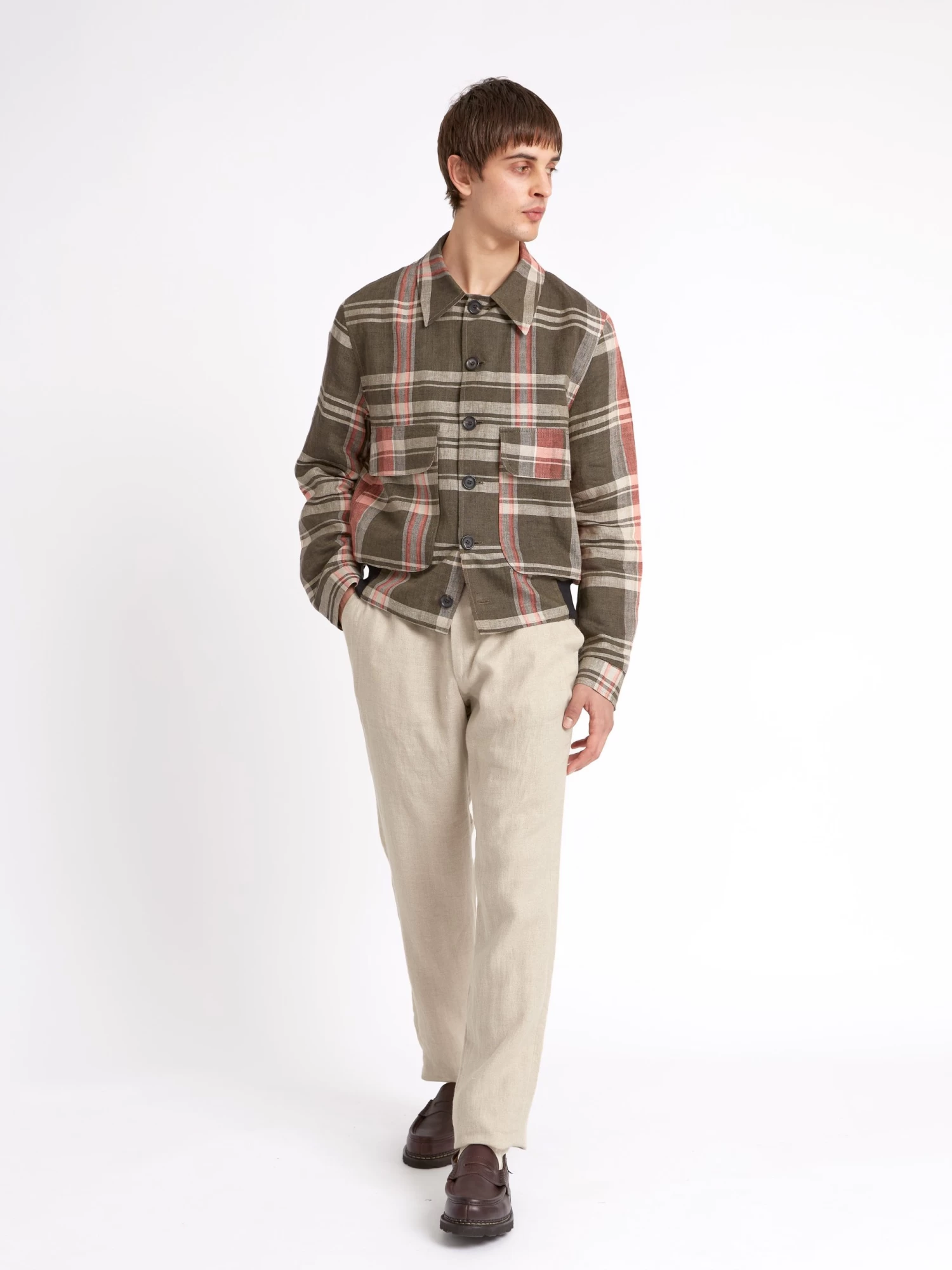 The Linfield jacket straddles that fine line between smart and casual spring outerwear. Smarter than a bomber but more versatile than the family of mid-length coats, it’s an ideal choice for spring looks. We’ve cut this check style in a beautiful 100% linen fabric for a slightly textural finish and a really natural drape.