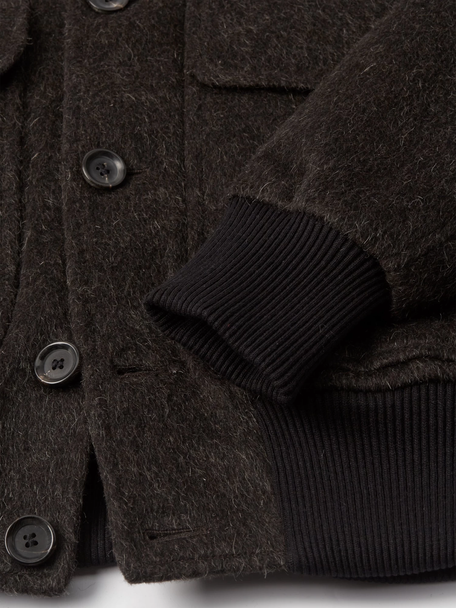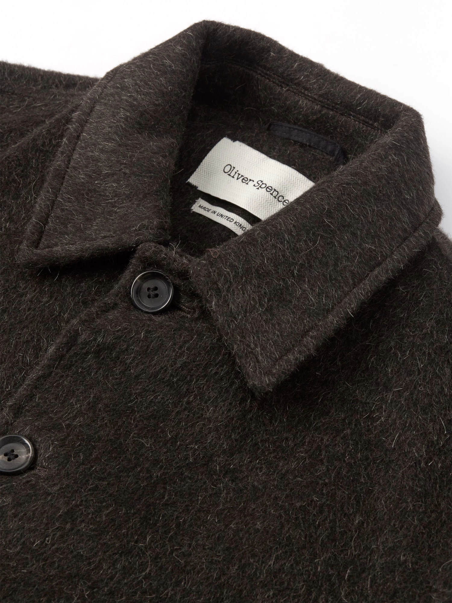 Cut in a traditional bomber jacket silhouette, the Linfield bomber features a turn-down colour and two front flap pockets. A menswear classic, this Regent Brown bomber has been constructed from a beautiful textured wool with highlight flecks, and is perfect worn with dark wool trousers or selvedge denim.