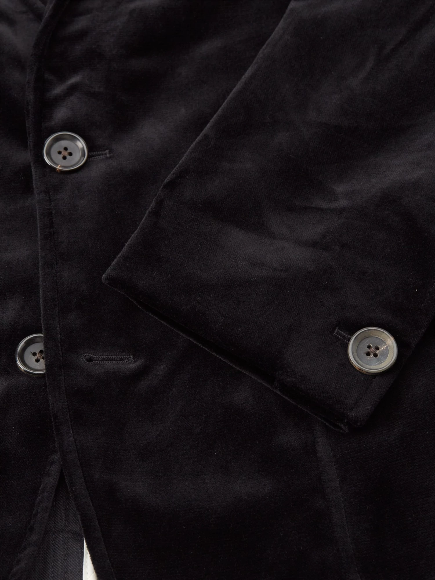 Part of the new and exclusive Mr Porter Velvet Capsule, this unstructured peak lapel Mansfield jacket in black velvet is a smart and bold addition to your tailoring rotation. Super tactile and with a light natural drape, it can be worn as a suit or as part of your separates options, pairing well with black or white tailored trousers. It’s a really textural way to elevate your smart casual wardrobe.