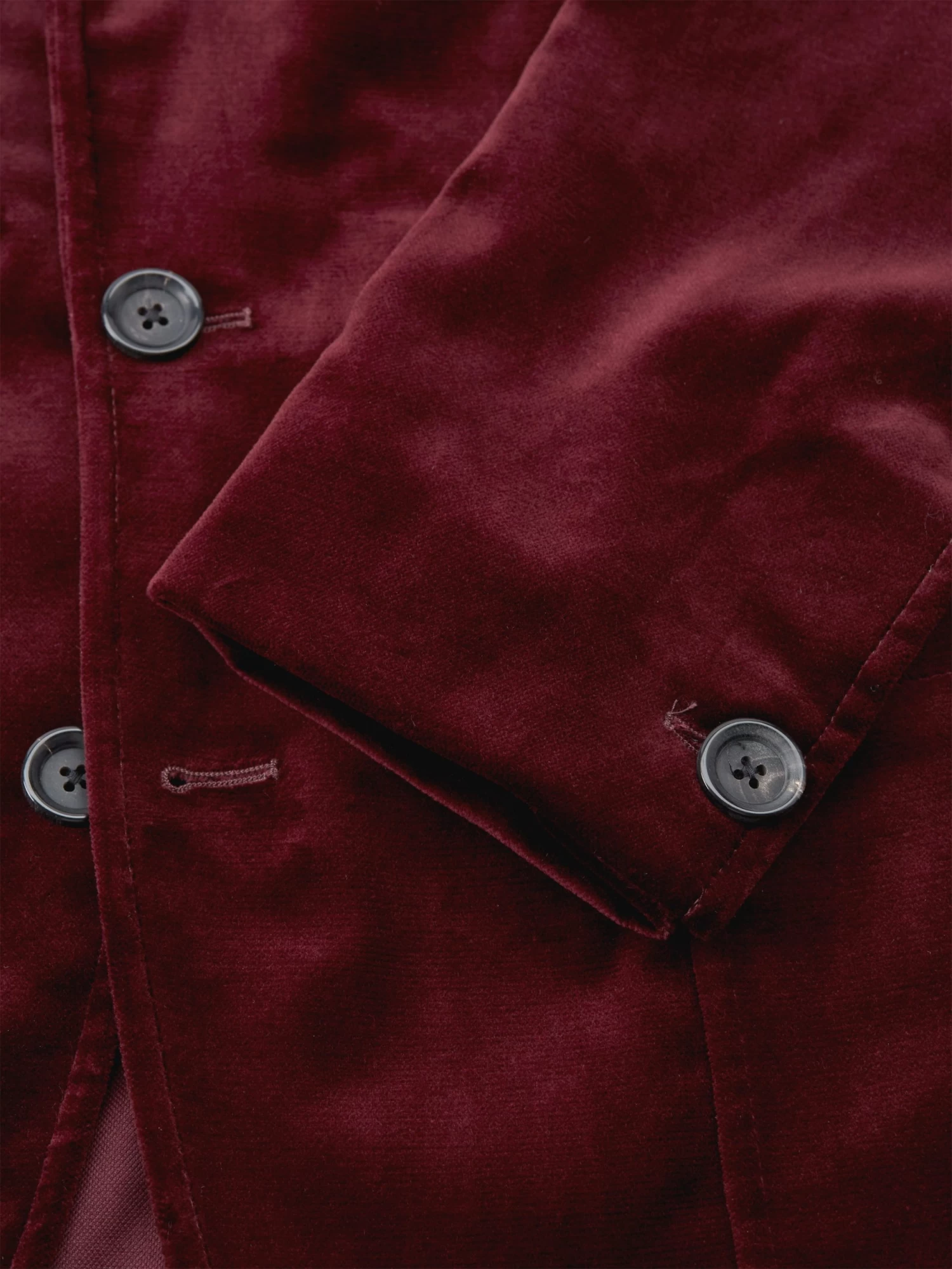 Part of the new and exclusive Mr Porter Velvet Capsule, this unstructured peak lapel Mansfield jacket in burgundy velvet is a smart and bold addition to your tailoring rotation. Super tactile and with a light natural drape, it can be worn as a suit or as part of your separates options, pairing well with black or white tailored trousers. It’s a really textural way to elevate your smart casual wardrobe.
