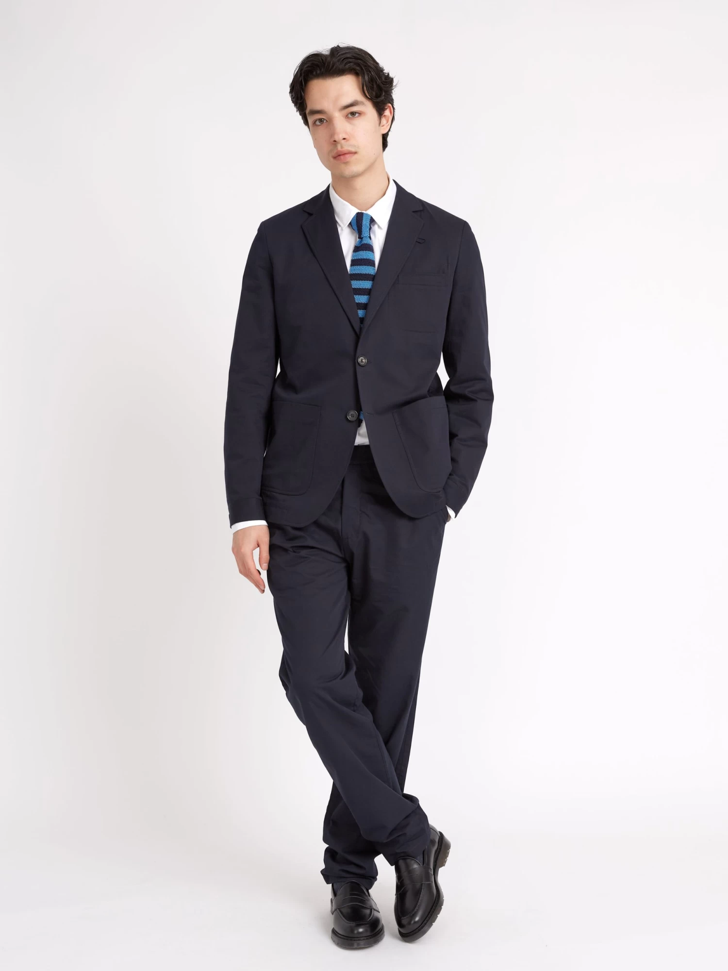A super versatile year-round bit of tailoring, our unstructured navy Ashdown Theobald suit is constructed from soft linen. The jacket features a notch lapel and two front patch pockets, while we have paired it with our neatly tapered fishtail trousers for a modern and sophisticated silhouette.