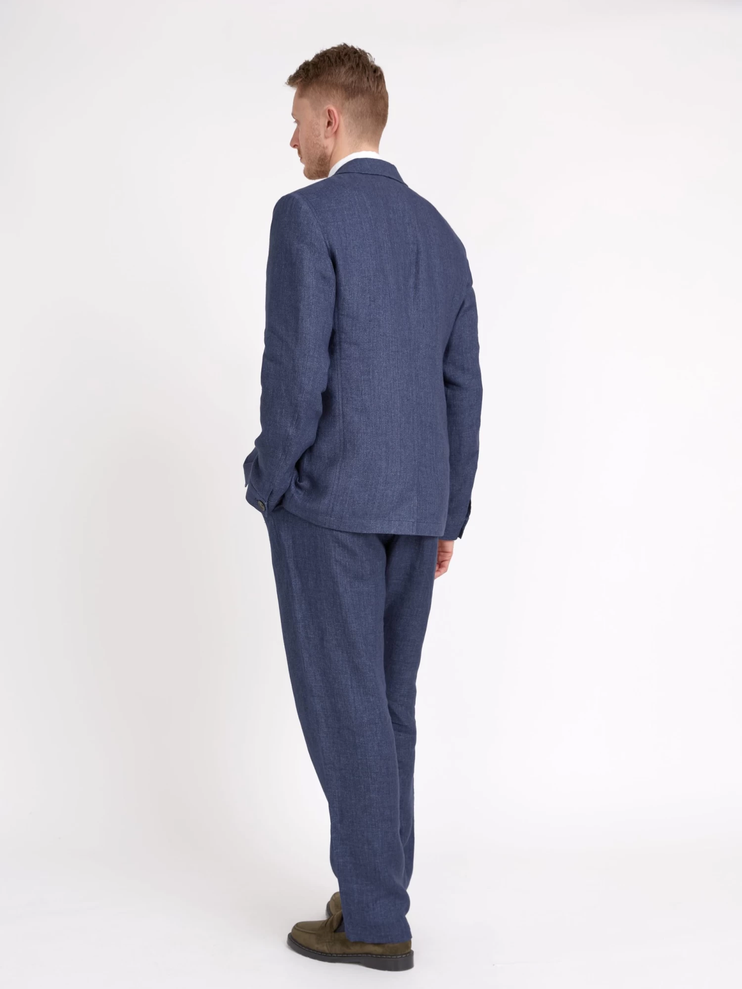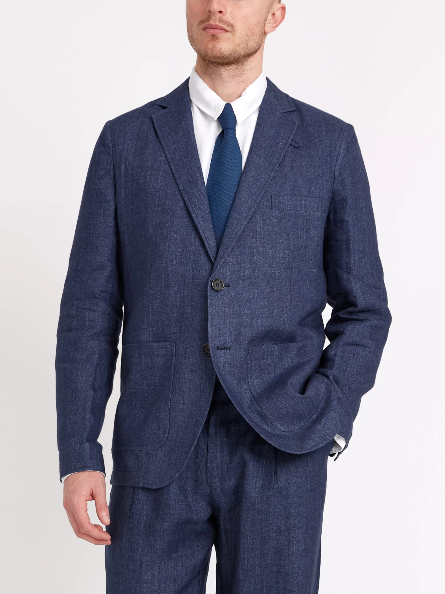 A super versatile year-round bit of tailoring, our unstructured navy Dubrow Theobald suit is constructed from soft linen with a wonderfully slubby texture or a unique finish. The jacket features a notch lapel and two front patch pockets, while we have paired it with our single-pleat belted trousers for a modern and relaxed silhouette.