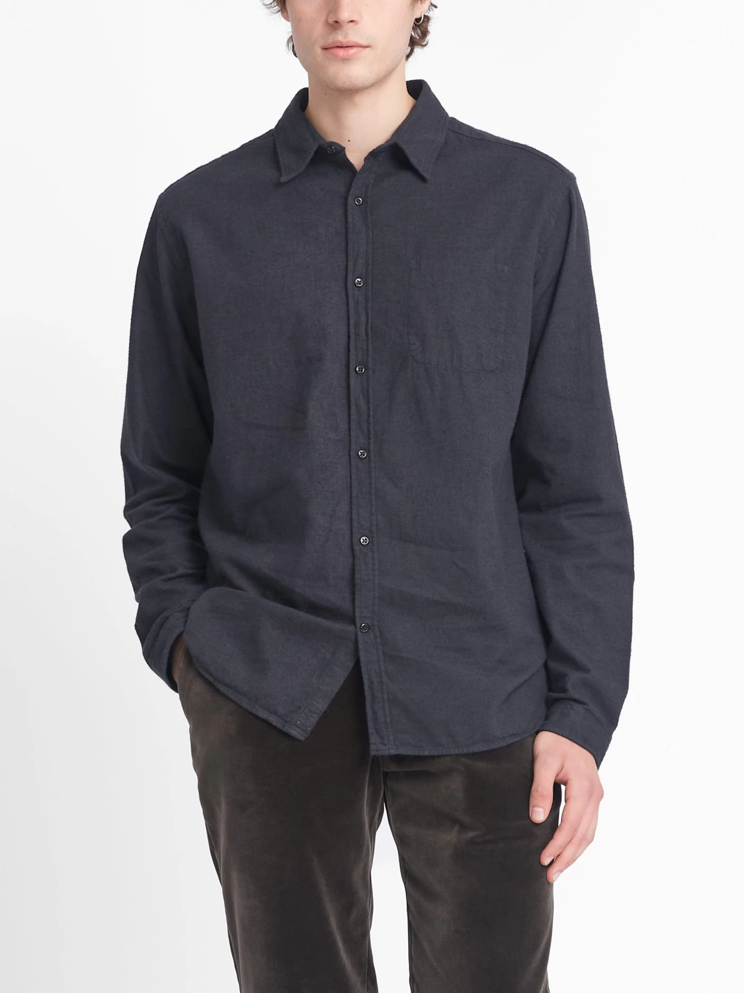 One of our most popular shirt styles, the regular-fit New York Special is a modern classic, featuring a spear collar and internal chest pocket. Super versatile and perfect throughout the season, this style is cut from a beautifully soft cotton fabric in a dark charcoal tone. Wear it with tailored black or grey trousers and chunky black Derbies for an elevated monochromatic look.
