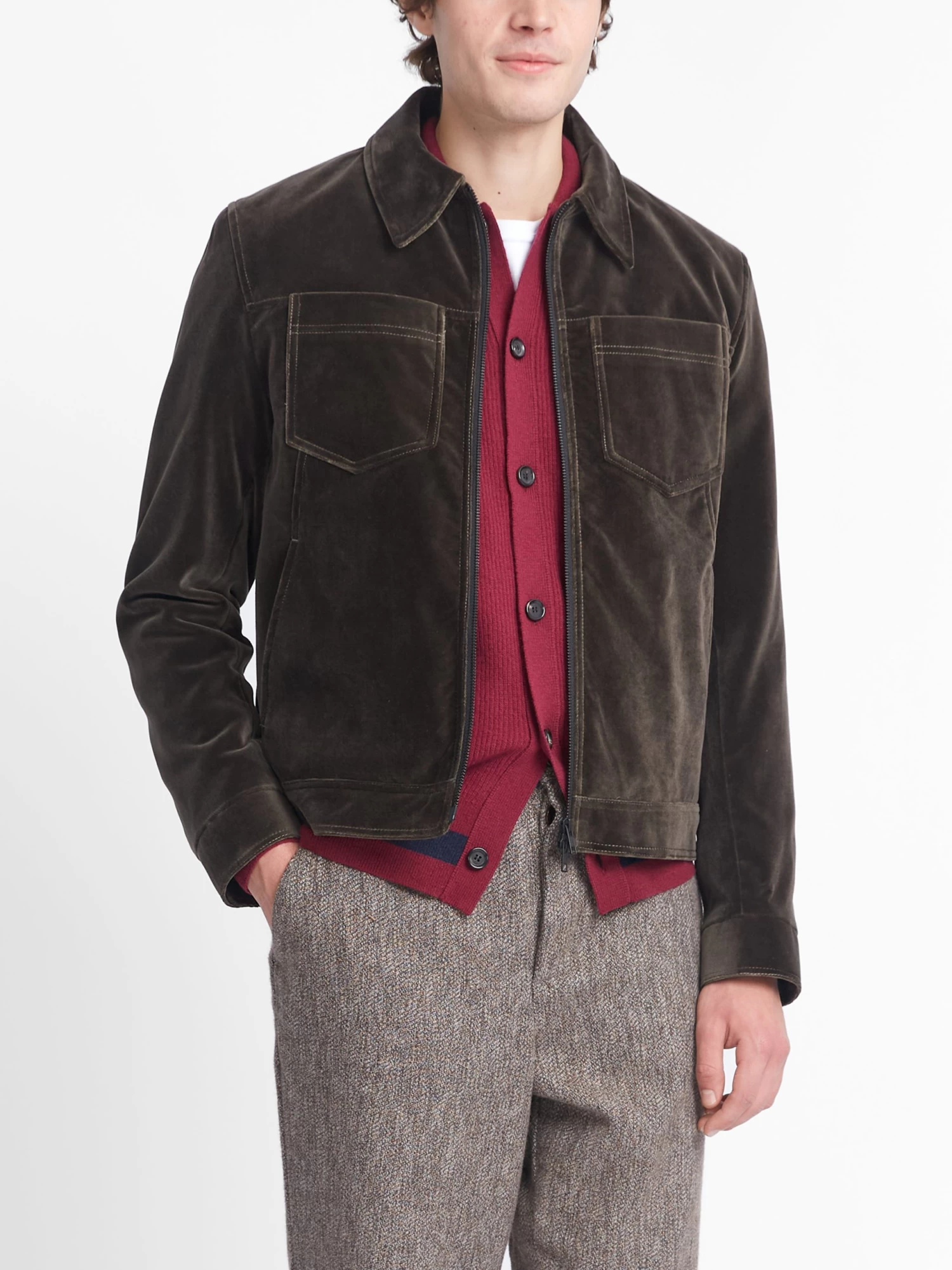 The Norton jacket is a really versatile zip-up blouson that features subtle western details and a classic trucker silhouette. This mole grey velvet style is incredibly soft and lightweight, adding a slice of bohemianism to your casual winter fits.
