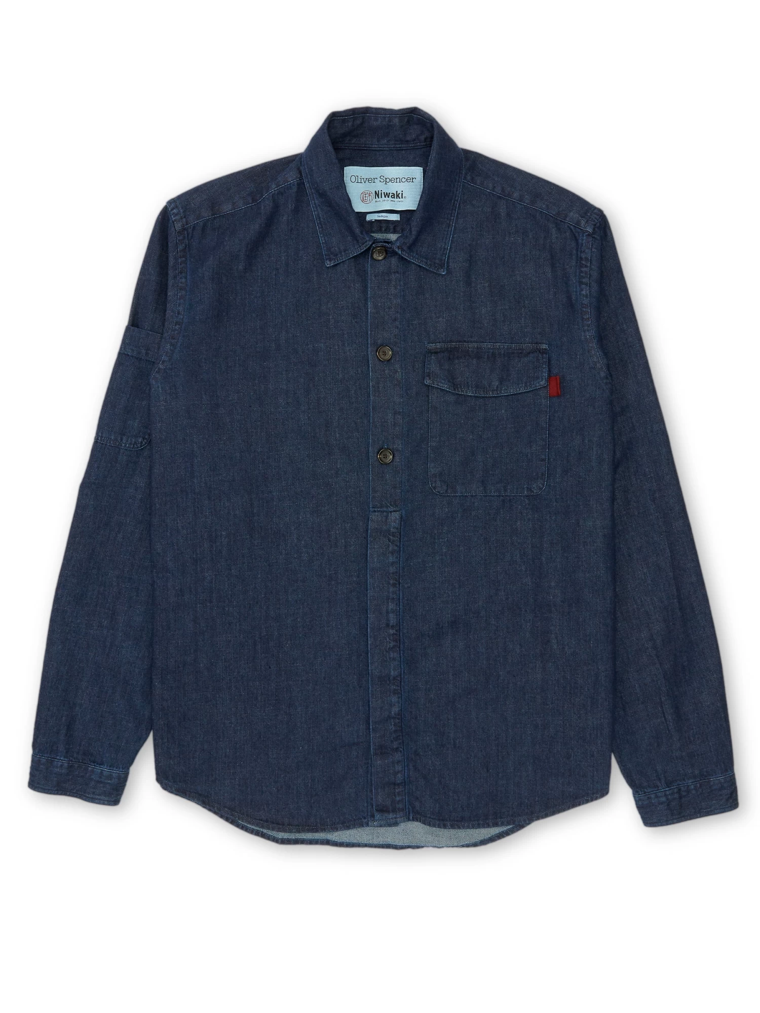 Oliver Spencer X Niwaki Haru Gardening Overshirt Mullins Denim Indigo Rinse