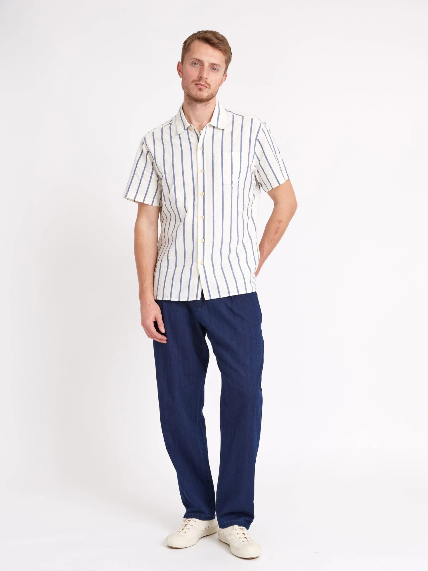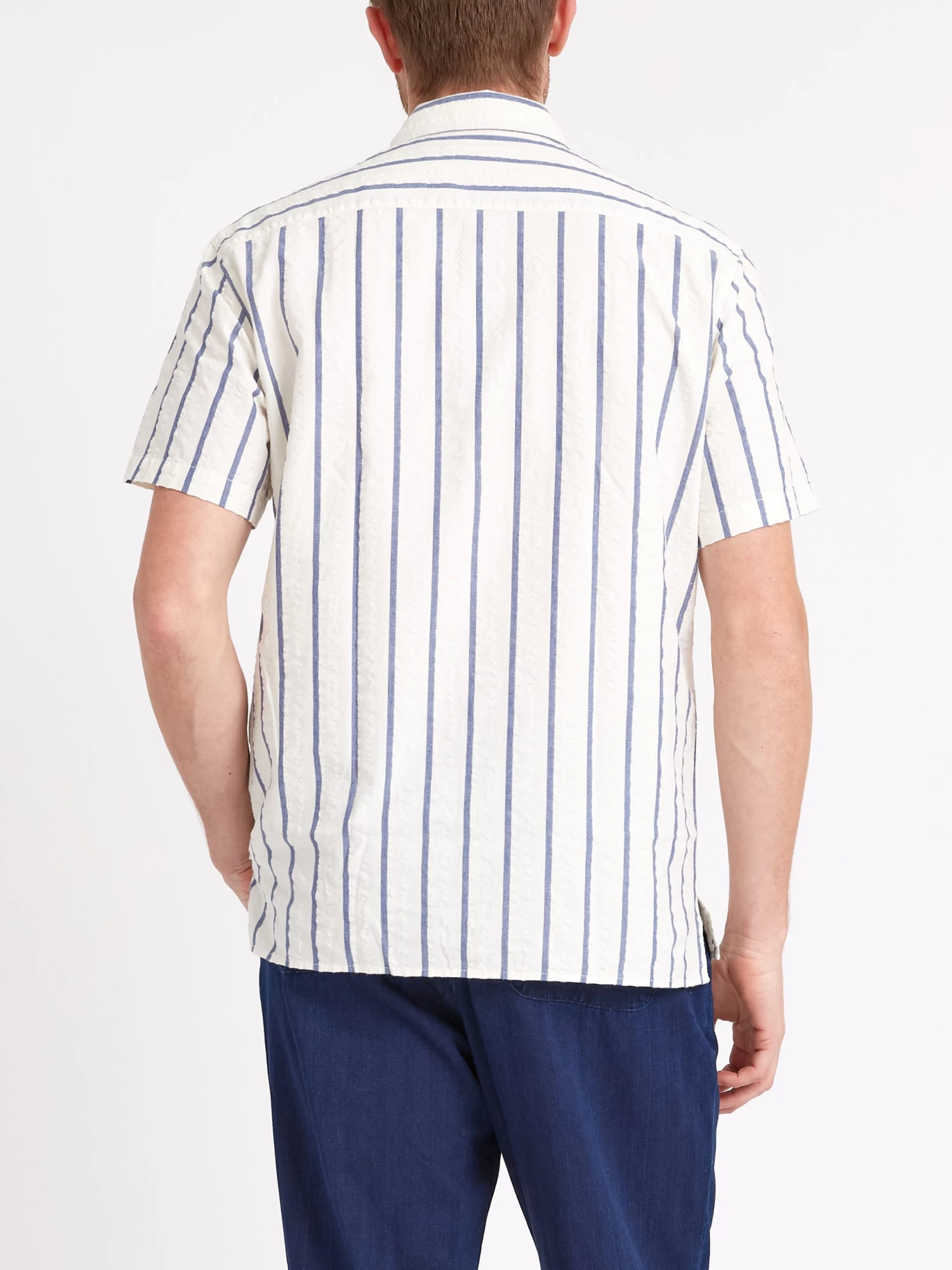 A modern classic, our Riviera short-sleeve shirt is non-negotiable summer silhouette. Cut from a cotton cloth, this white and blue style is a great look with neutral tone chinos in spring, or tailored shorts throughout the summer months.