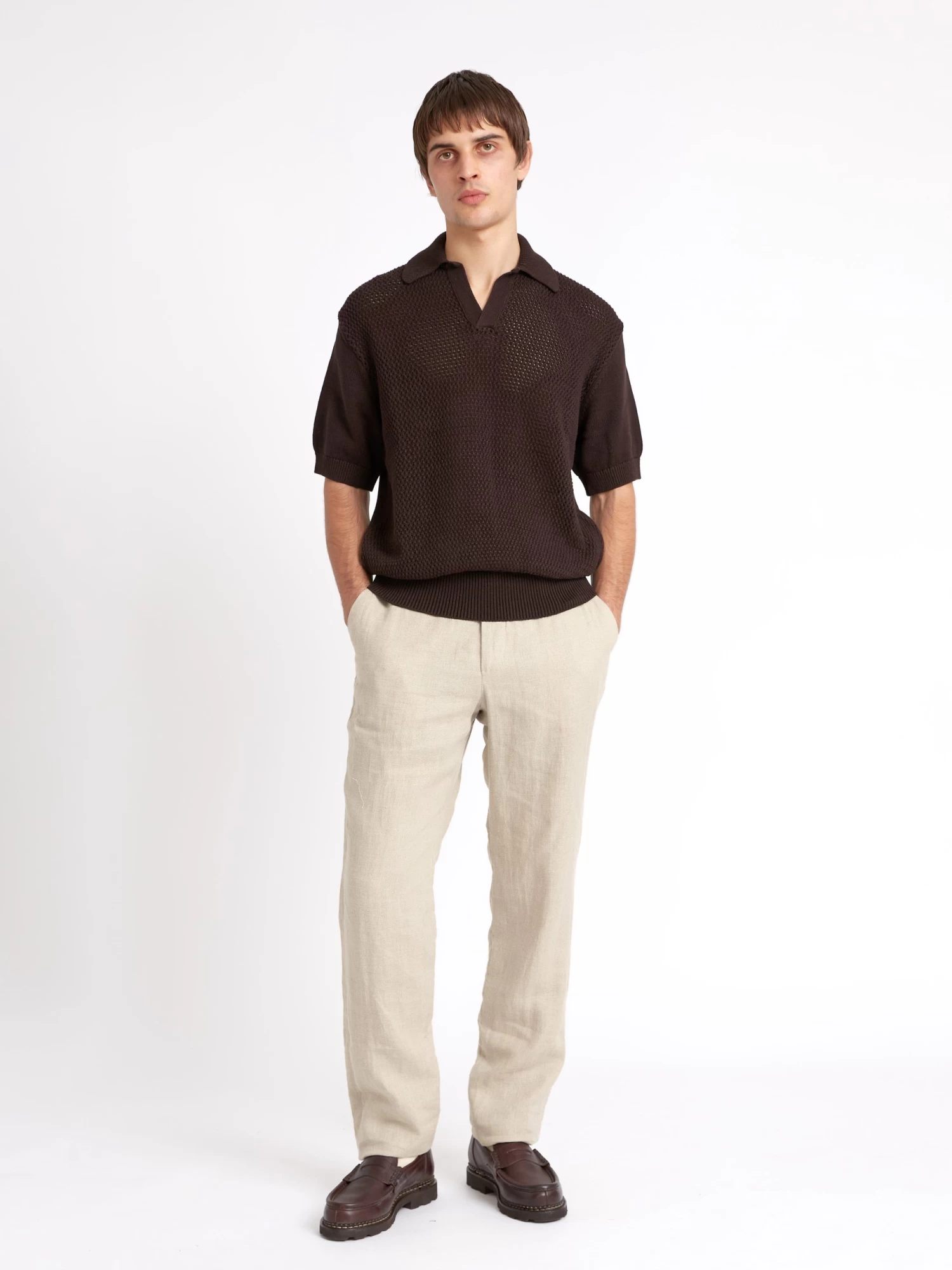 A textural knitted polo is a spring-summer godsend. Super versatile, this waffle-knit style can be worn casually with shorts or chinos, as well as being layered below relaxed tailoring.