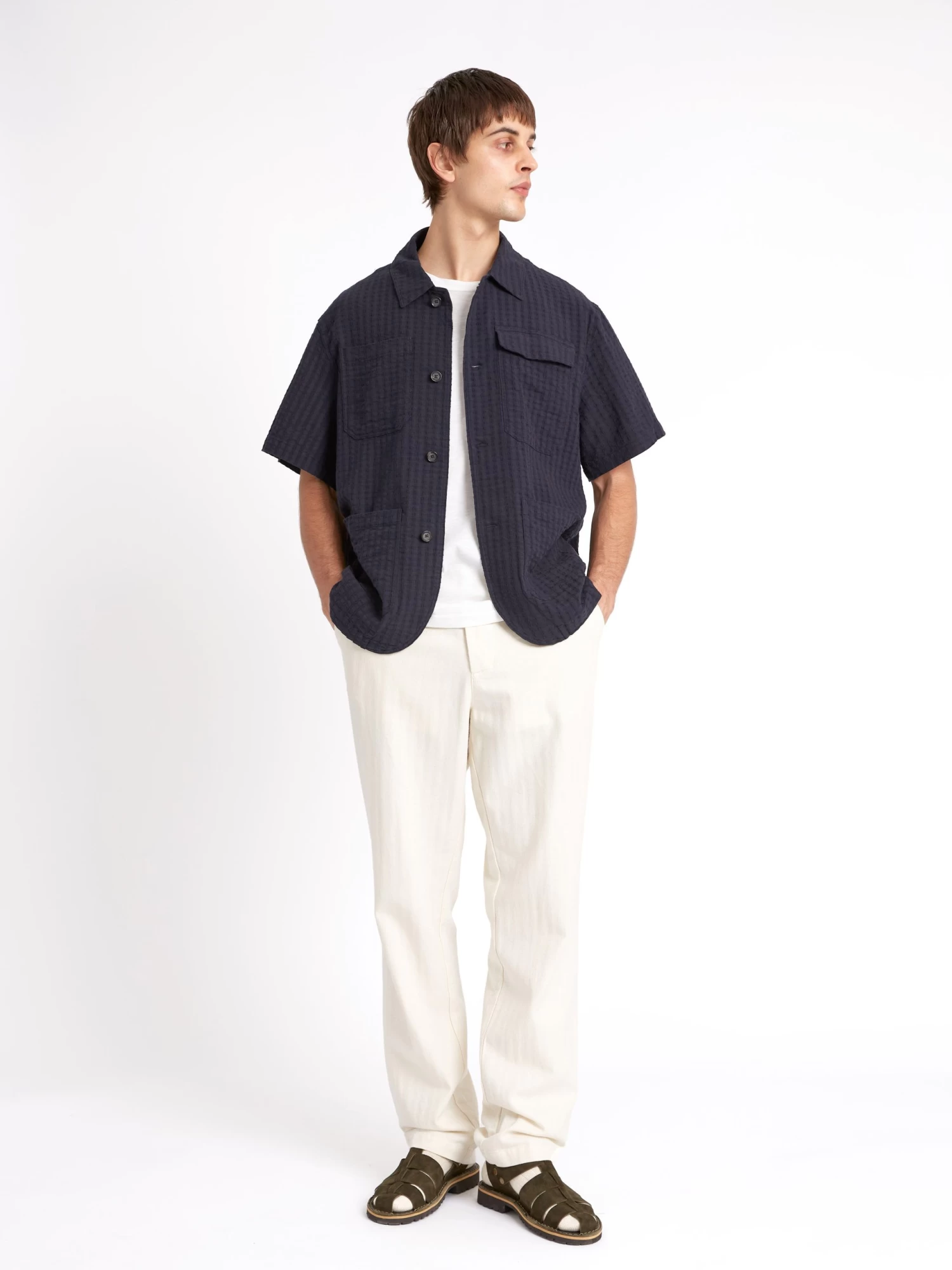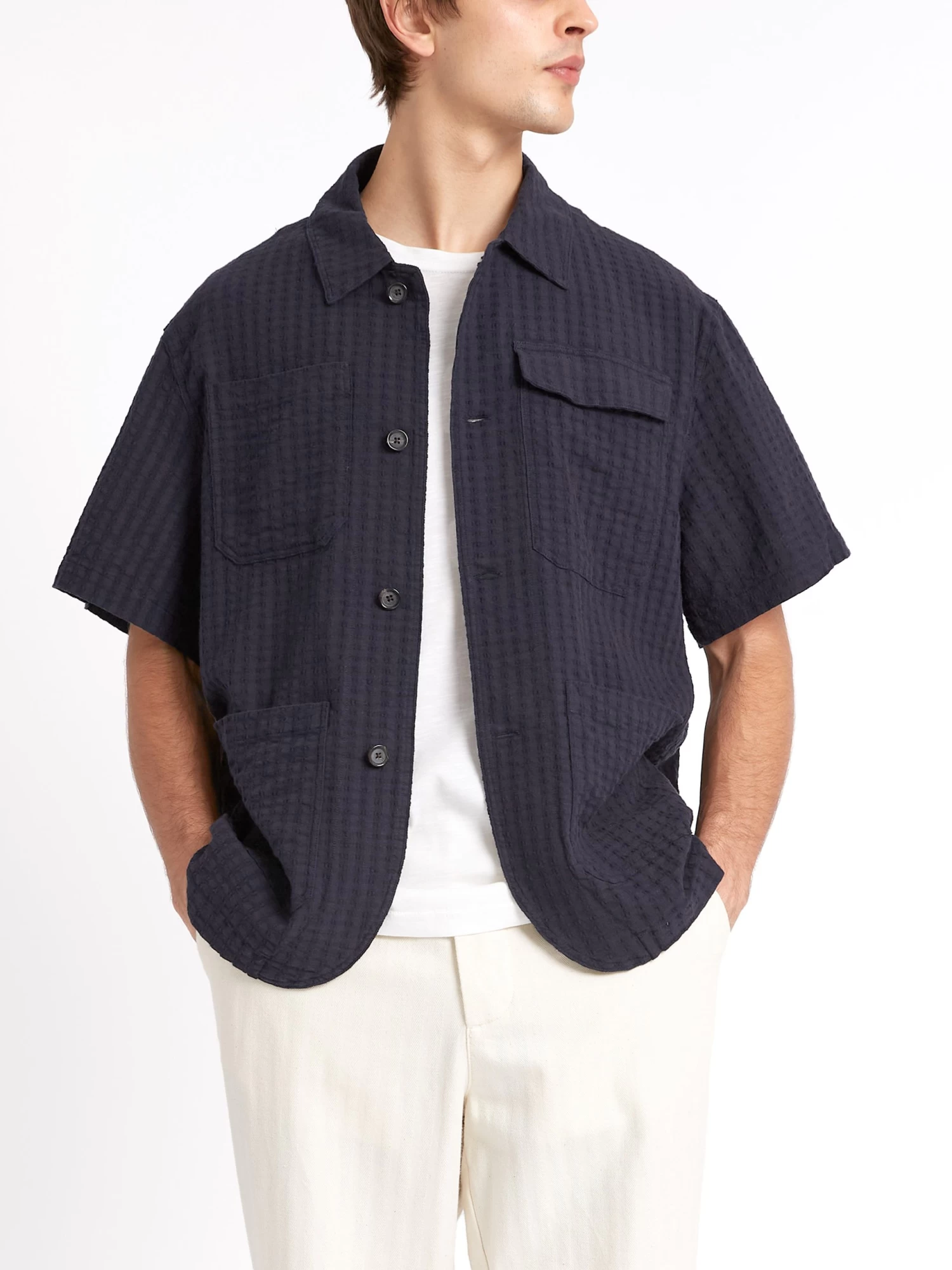 Taking inspiration from the traditional Cuban Guayabera, this four-pocket safari style adds a dose of modernity to the classic, thanks to a lightweight soft organic cotton, which features a delicate stitch detail. A classy option for casual spring/summer fits.