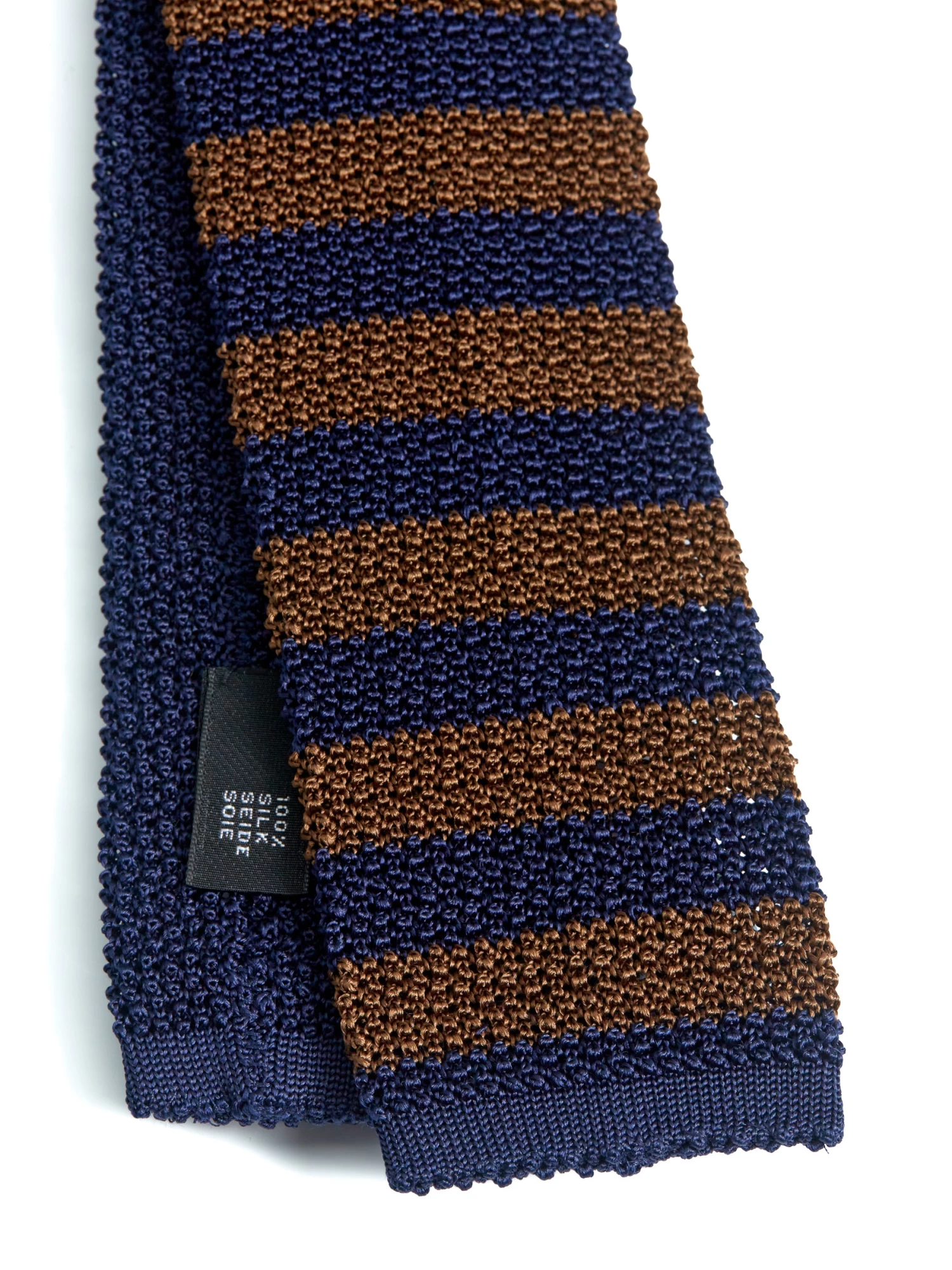 Silk Knitted Tie Navy/Brown Stripe