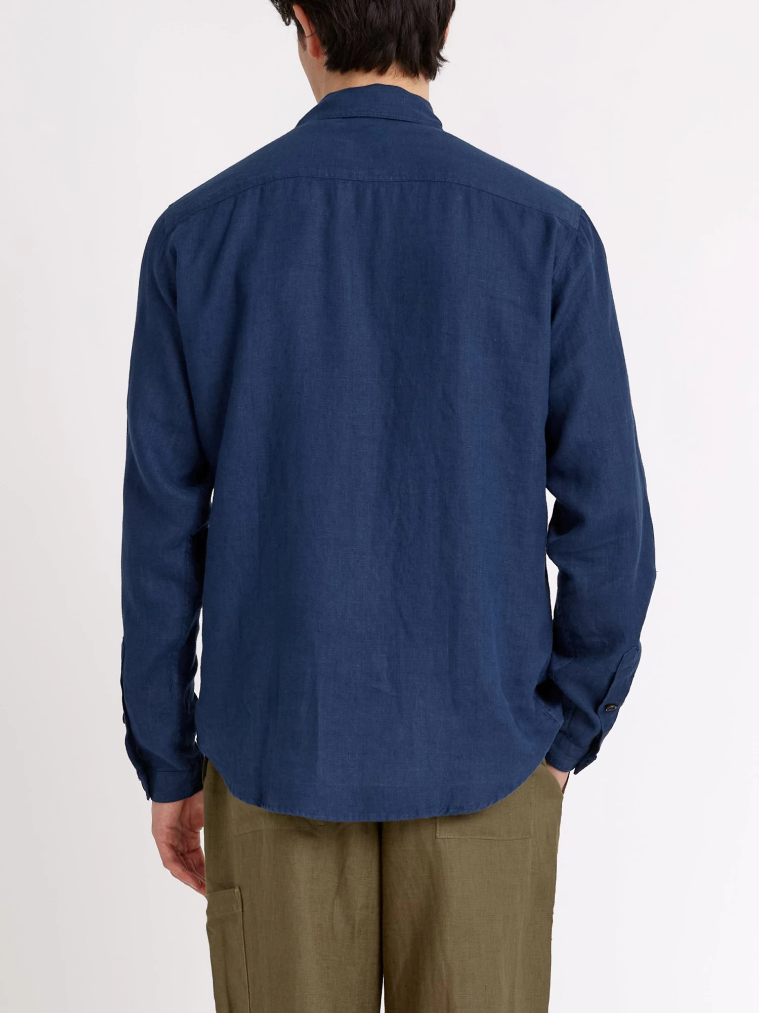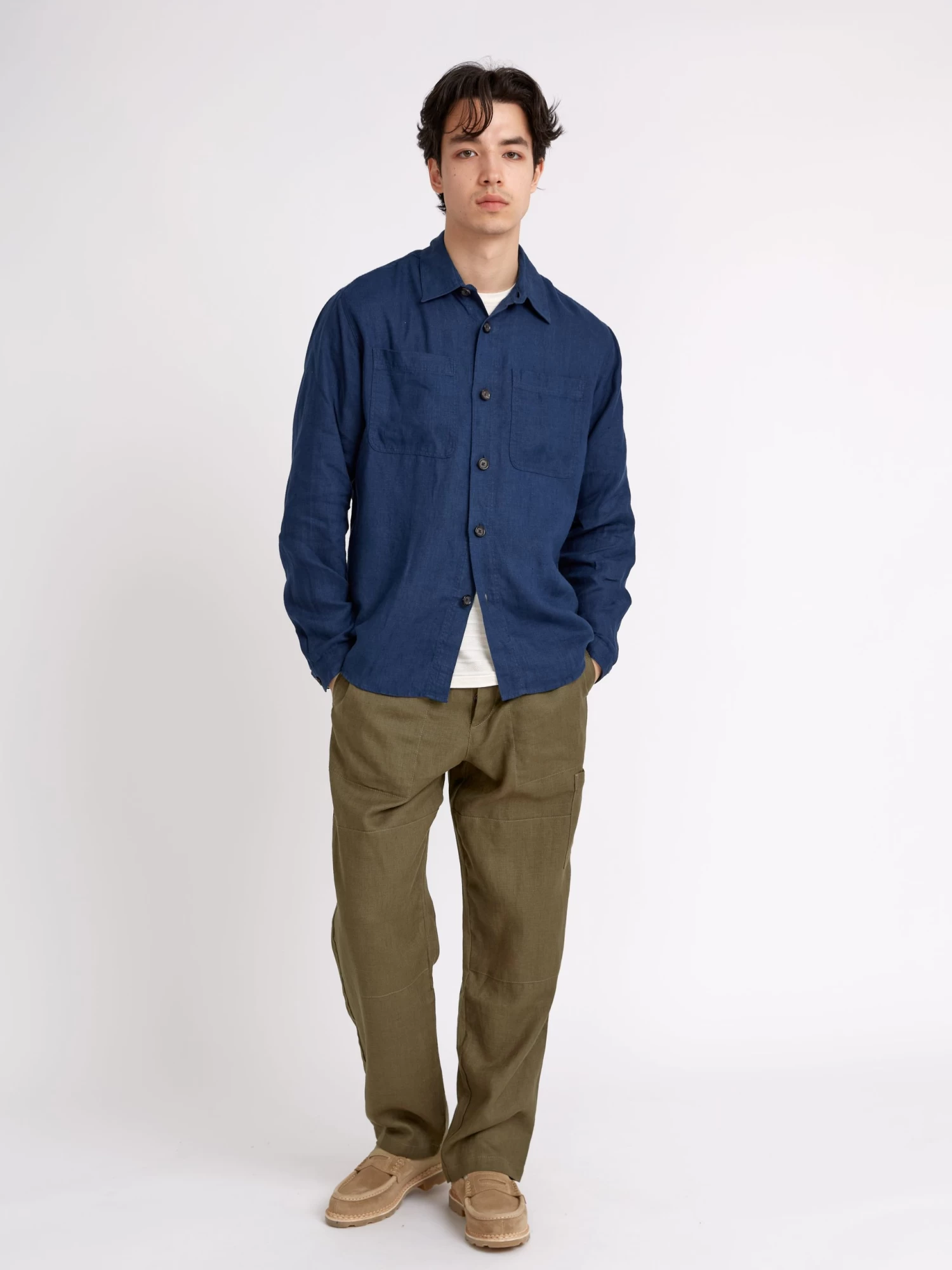 Inspired by vintage military shirt silhouettes, the Treviscoe shirt is a modern classic and a great fit for contemporary workwear wardrobes. This 100% linen style in navy is a great option for a breezy overshirt this season, paired with your favourite jeans.