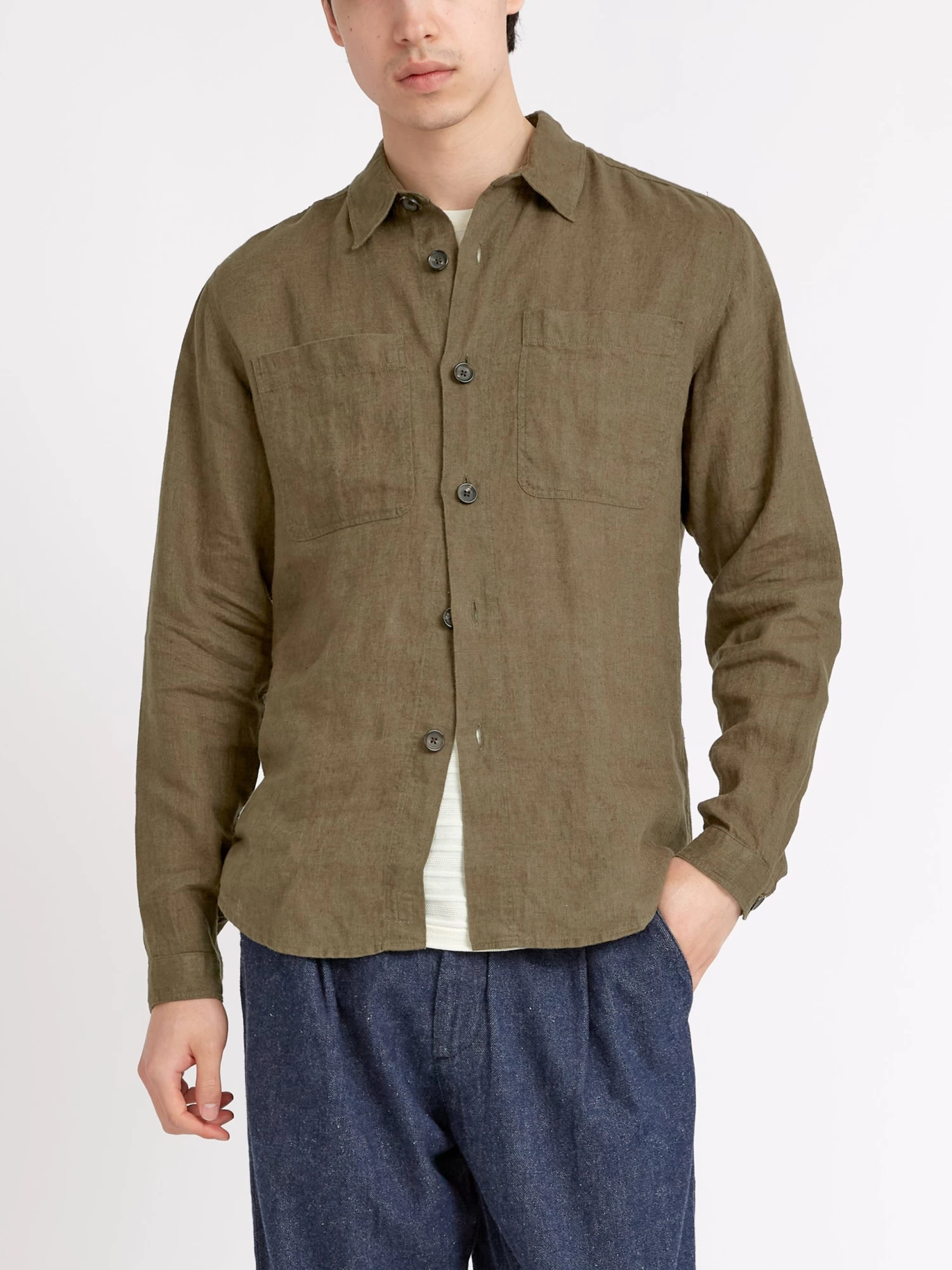 Cut in 100% linen in a rich green tone the Treviscoe shirt is a two patch-pocket style inspired by vintage utilitarian and military shirts. It’s perfect worn with our drawstring trousers or tailored shorts for a relaxed off-duty summer look, or you can wear it as a lightweight overshirt layered over a tee.